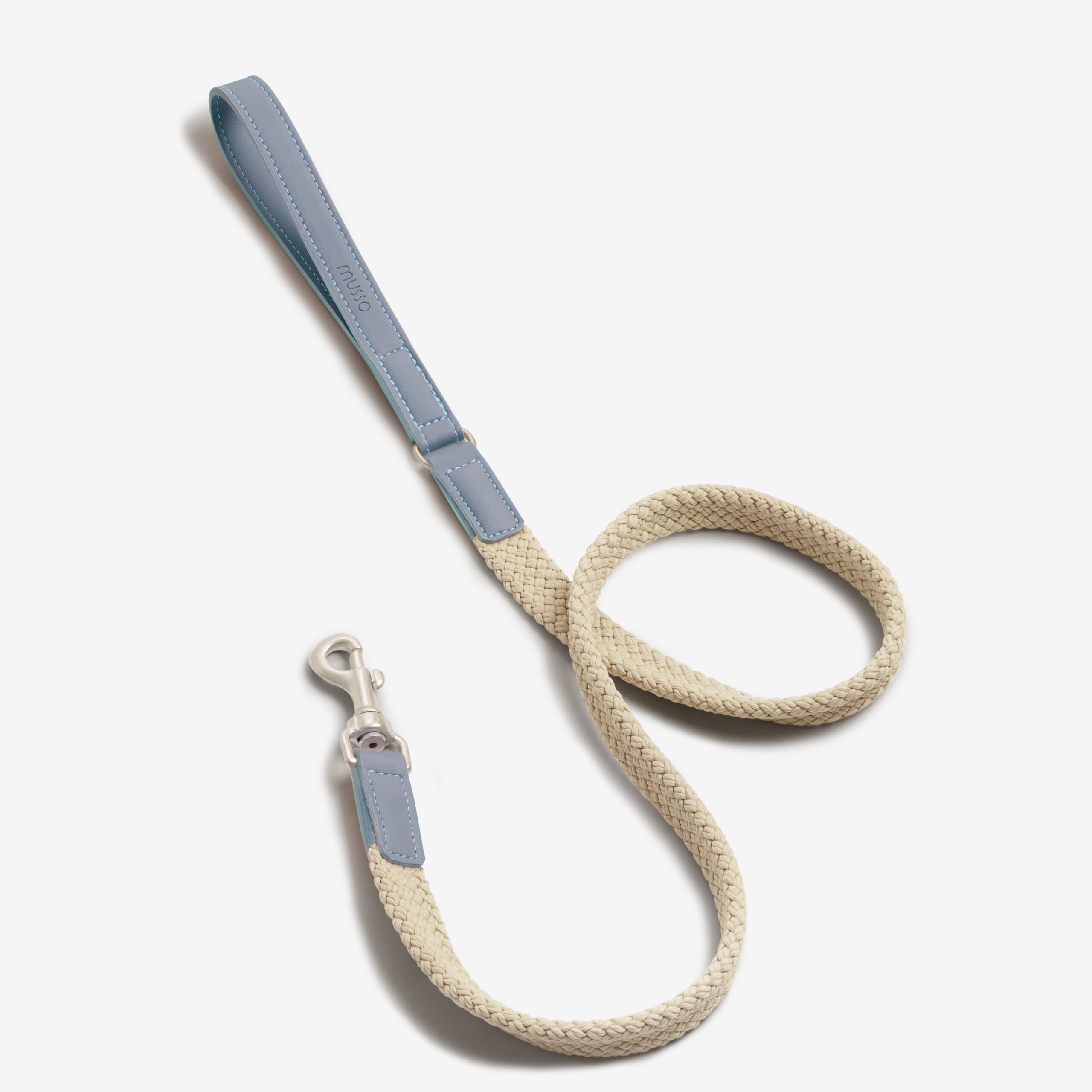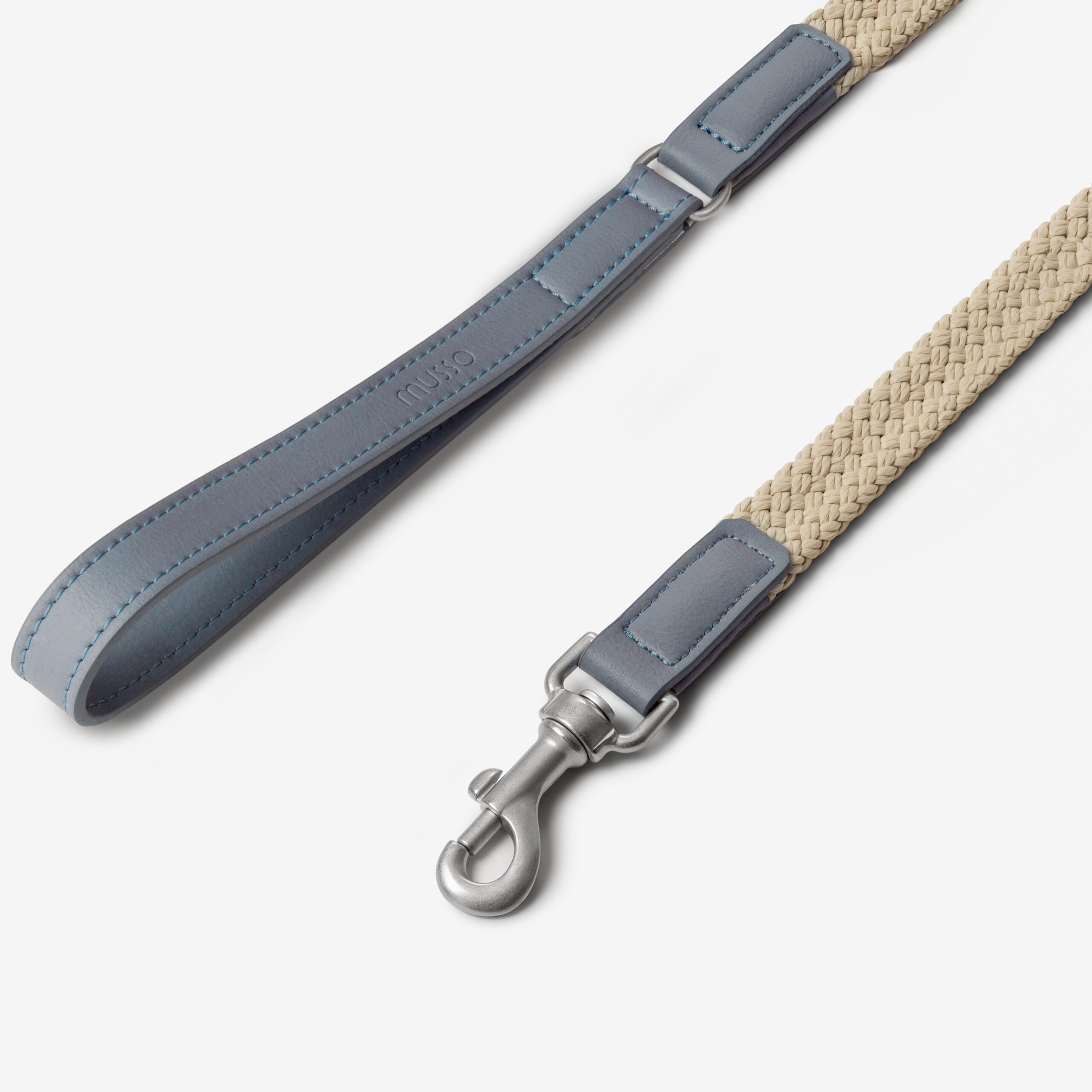 Smycz Nodo Ardesia to nowoczesnego designu i funkcjonalności, stworzone z myślą o codziennym komforcie oraz estetyce. Wykonana z wytrzymałego sznura polipropylenowego w głębokim, szaro-niebieskim odcieniu oraz wykończona wegańską skórą Apple Leather w dopasowanej tonacji.