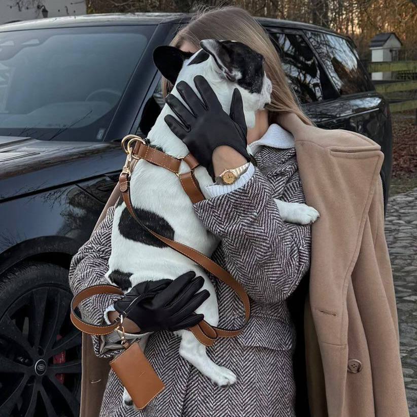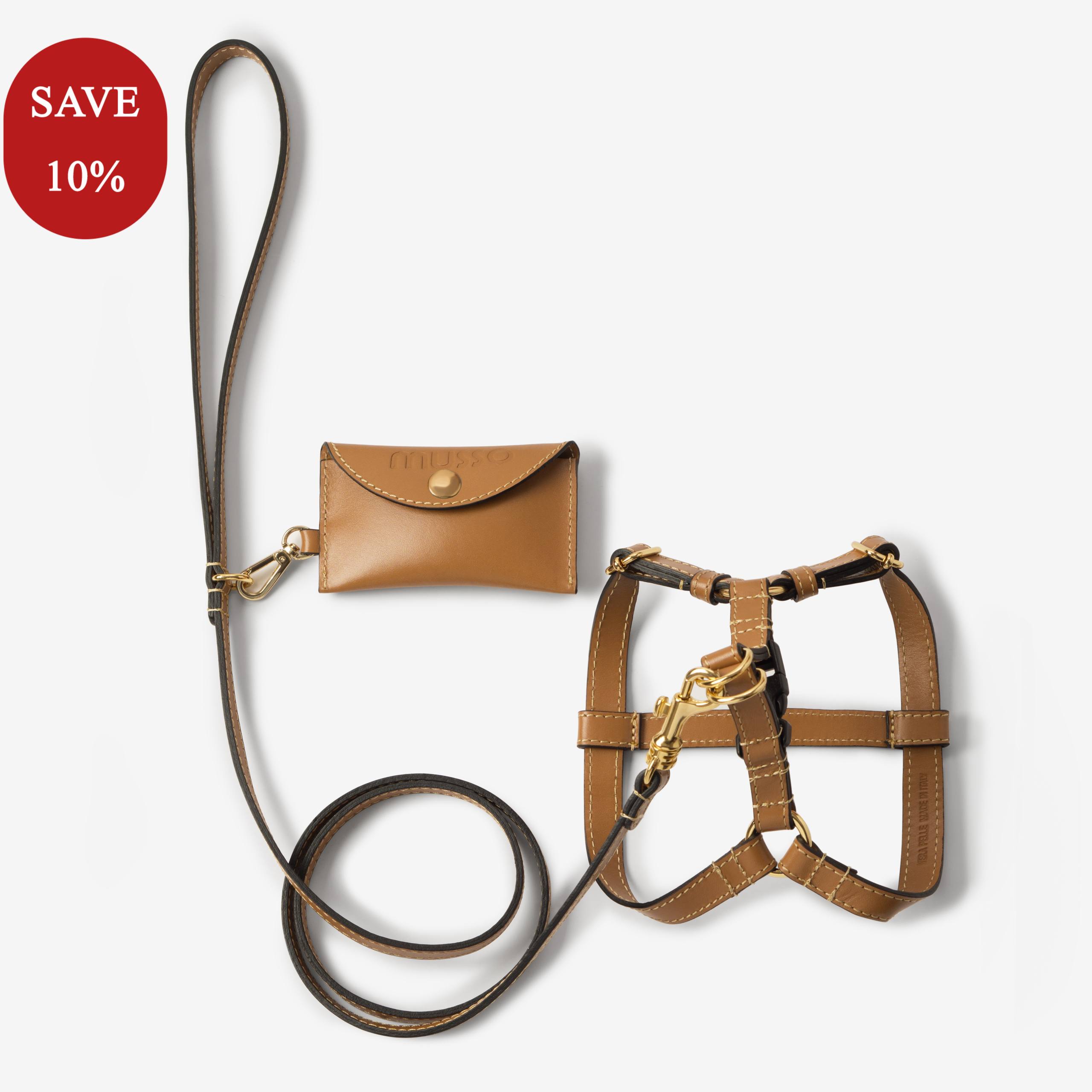 Zestaw Vero Caramello z szelkami to propozycja dla tych, którzy szukają komfortu, funkcjonalności i elegancji w codziennych akcesoriach spacerowych. Ciepły karmelowy kolor, jasnobeżowe przeszycia i złote, bezniklowe okucia tworzą harmonijną kompozycję, która przyciąga wzrok i zapewnia wygodę.