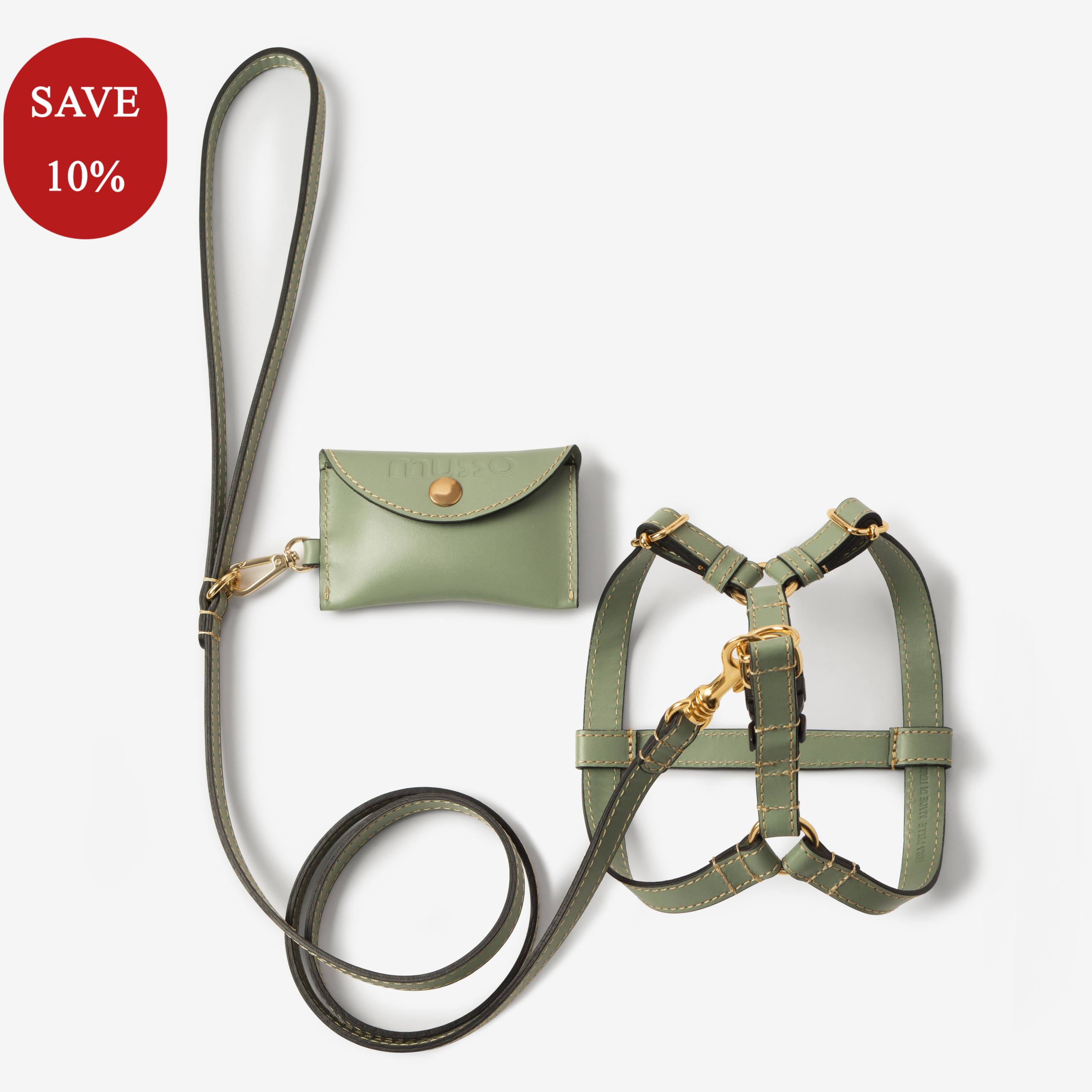 Zestaw Vero Salvia to propozycja dla tych, którzy cenią spokój, równowagę i naturalne tonacje. Stonowany odcień szałwii w połączeniu z jasnobeżowymi przeszyciami i złotymi, bezniklowymi okuciami tworzy świeży, a zarazem ponadczasowy zestaw spacerowy.